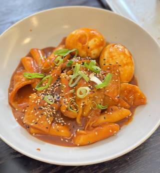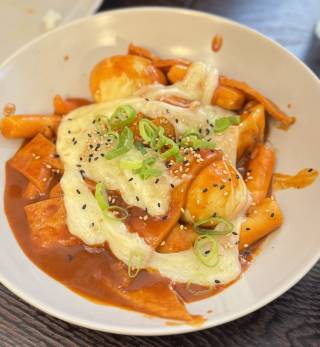 and finally, the last foods are Tteokbokki(떡볶이). It’s made of rice cake, fish cake, egg, some vegetables. we added cheese too.