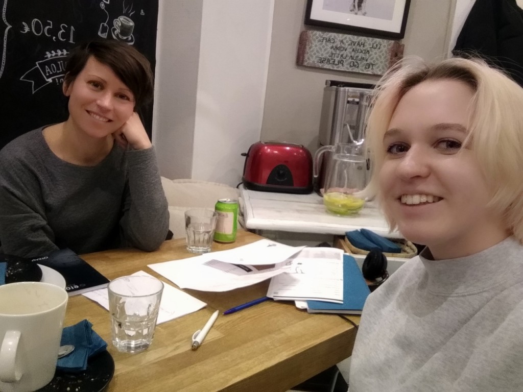 We visited 4 different shops, enjoyed talking with sellers, tryied some clothers and.. what else do girls need?) After we decided to go a cute “Kaffila” for driking a hot coffee with traditional laskiaispulla and learn Russian and Finnish.