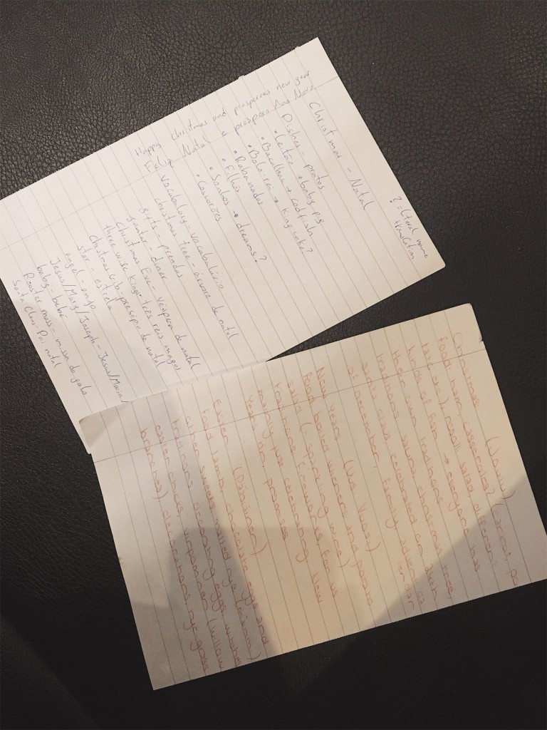 This one was one of the most interesting topics for me: how we celebrate the biggest holidays of the year. So in our fourth meeting we discussed about three major holidays: Christmas, Easter and New Years. The point was to see how the ways to celebrate these holidays are different, or if they are the same. I honestly knew nothing about how they celebrate these holidays in Portugal but I had a feeling that it wouldn’t be the same. We talked about traditional foods we enjoy on holidays and also traditions themselves.