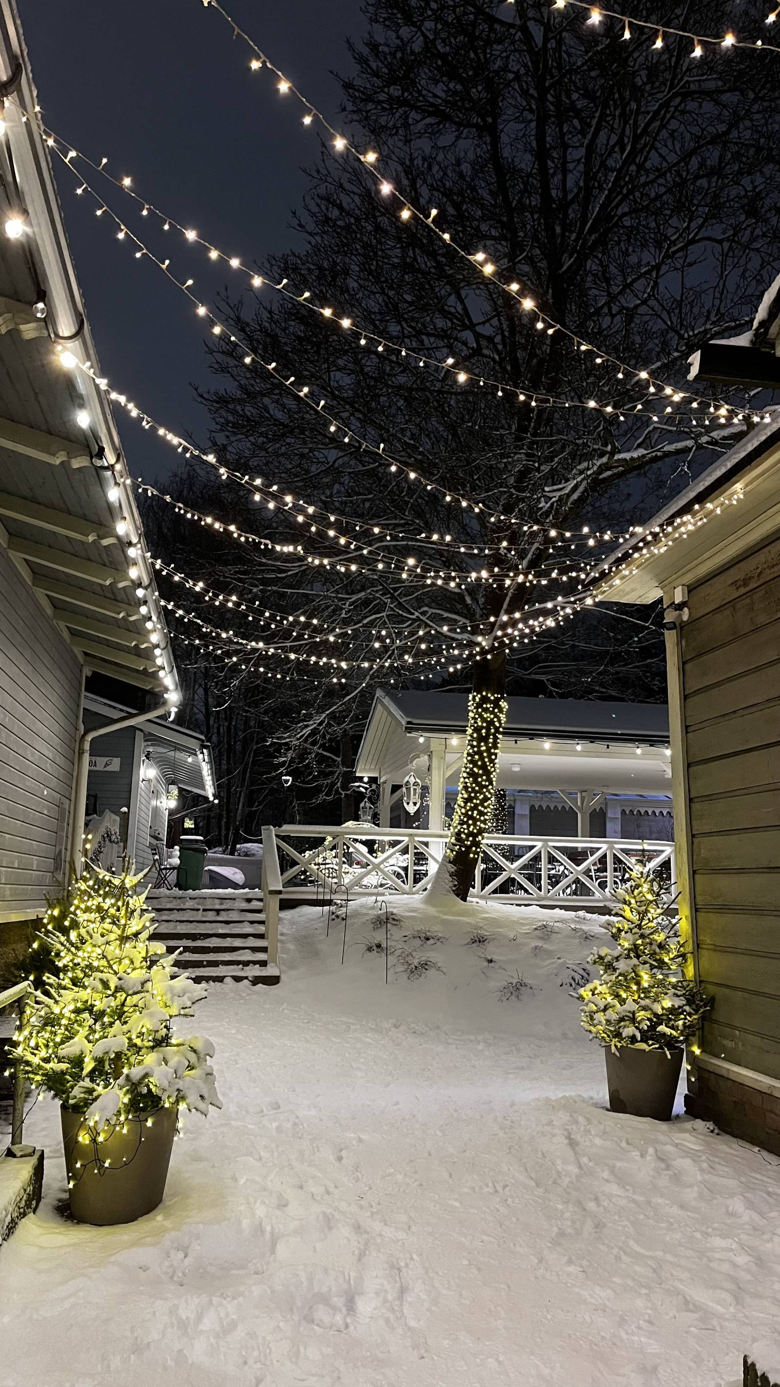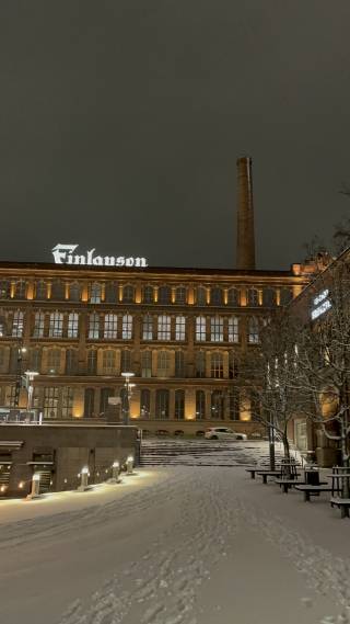 Since it finally started snowing again in Tampere on Sunday afternoon, but the weather forecast unfortunately didn’t look very promising and predicted warmer, rainy weather for the next day, we wanted to take the opportunity right away and go for a late-night walk together.