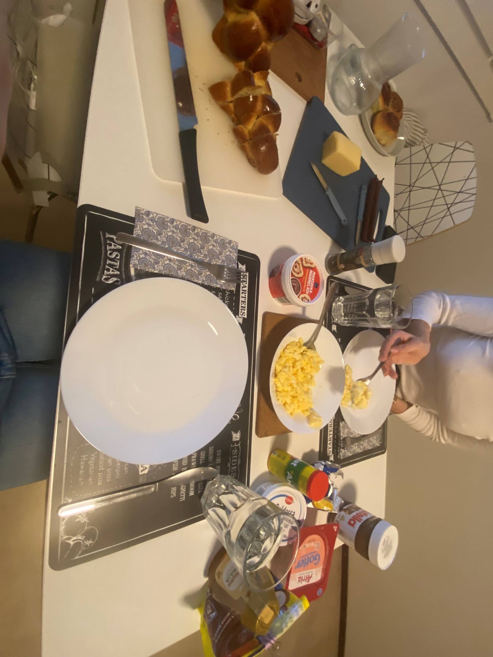 On this Sunday morning Jasmin came over to my place and we brunched together. I baked a so called “Zopf” (something like a Sunday bread in Switzerland) for the both of us to enjoy. We ate some scrambled eggs with “Aromat” (a type of salt also from Switzerland) and tried some reindeer sausage for the first time. Well I have to admit, I like the taste of it. Jasmin baked some cinnamon rolls for dessert. All together just delicious! I ate so much, but it was too good to stop eating. We talked about our childhood, the way we grew up, what we watched as teens and interestingly the both of us are marvel fans! We enjoyed our multi-cultural breakfast while talking for hours.
