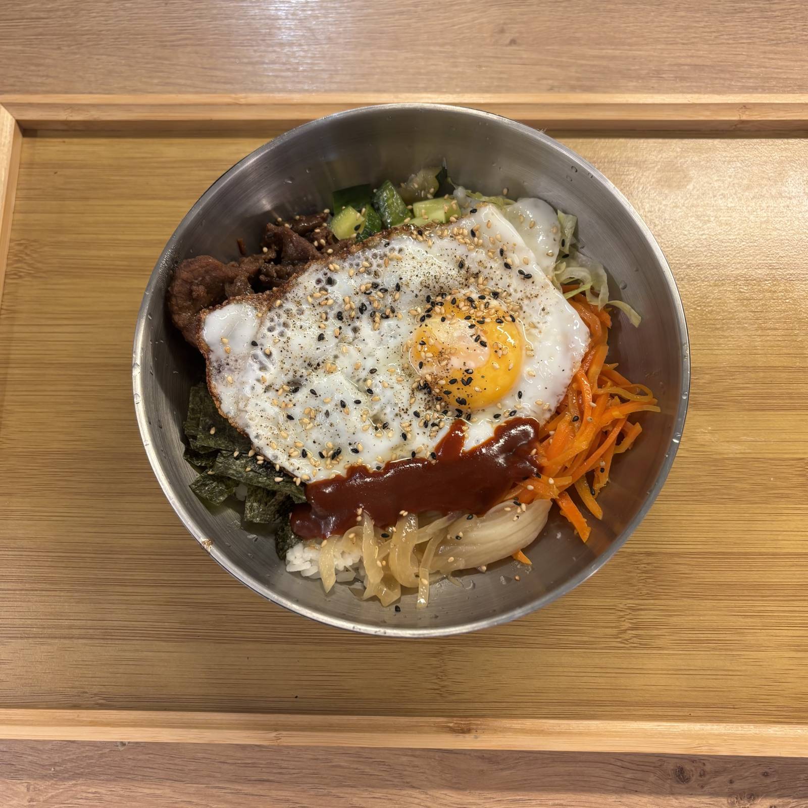 We visited a Korean restaurant called Kim’s Bap with my Finnish partner Miro and other Korean friends. The owner told us that it’s the only Korean-owned restaurant in Tampere. We ordered gimbap, bibimbap, and tteokbokki, and Miro also tried sikhye, a traditional Korean sweet rice drink.