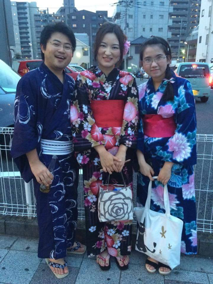 As my internship lasted until August, I had more chances to explore the summer season in Japan. About the weather, it was not so nice to go out during the season of both humid and hot. It is also the time of tsunami. Regardless of these factors, it was still worth to staying there for the summer because it is time for “Hanabi” (fireworks) festivals. For me, the Japanese fireworks were bigger, longer lasting, and more colorful than any fireworks that I have seen so far. The special thing going hand-in-hand with hanabi was wearing Yukata. This is traditional clothing in Japan, and also is known as a summer version of kimono. Wearing yukata does not mean only wearing an outfit, but a certain hairstyle and elaborate accessories are the requirements to complete the look. I and my colleagues went to see hanabi in August, it was a great chance for me to wear yukata. One of my colleagues has lent me her yukata, which was made by her mother. I would say, it was not as easy as it looked to wear the yukata by myself. With the help from my colleague, I finally managed to have a perfect look for the firework festivals.