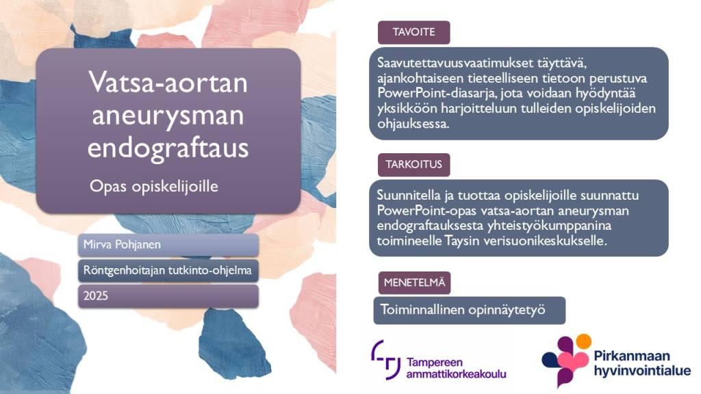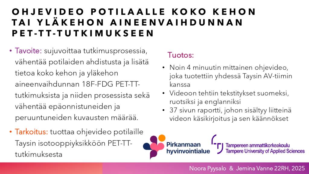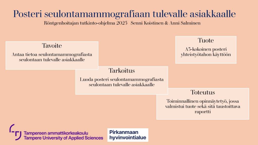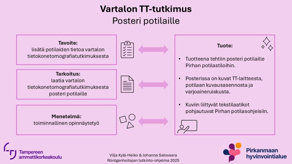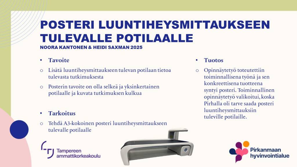 20.2.2024 Posterit 2023 Vuoden 2023 aikana TAMKin röntgenhoitajan tutkinto-ohjelmasta valmistuneiden opinnäytetöiden posterit. Opinnäytetyö