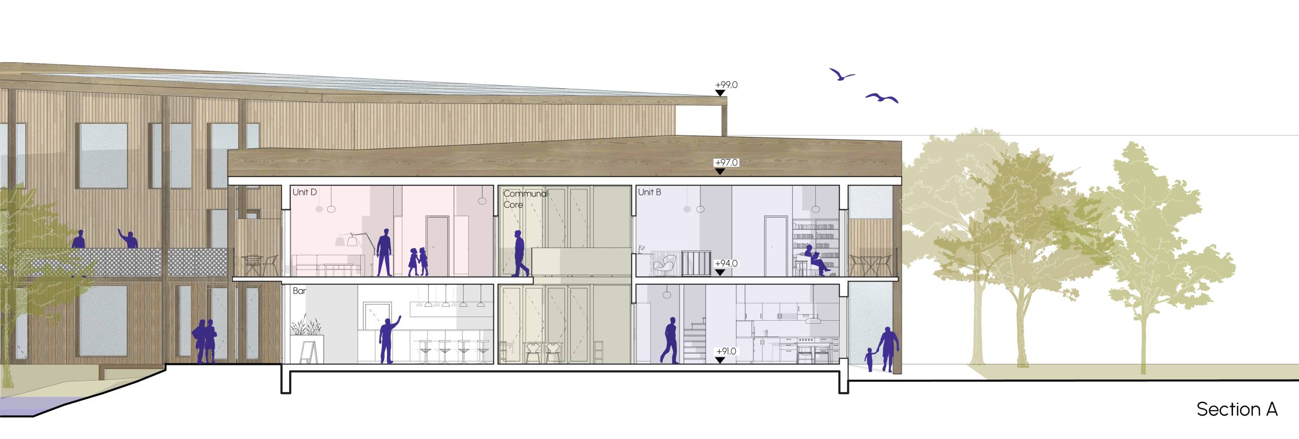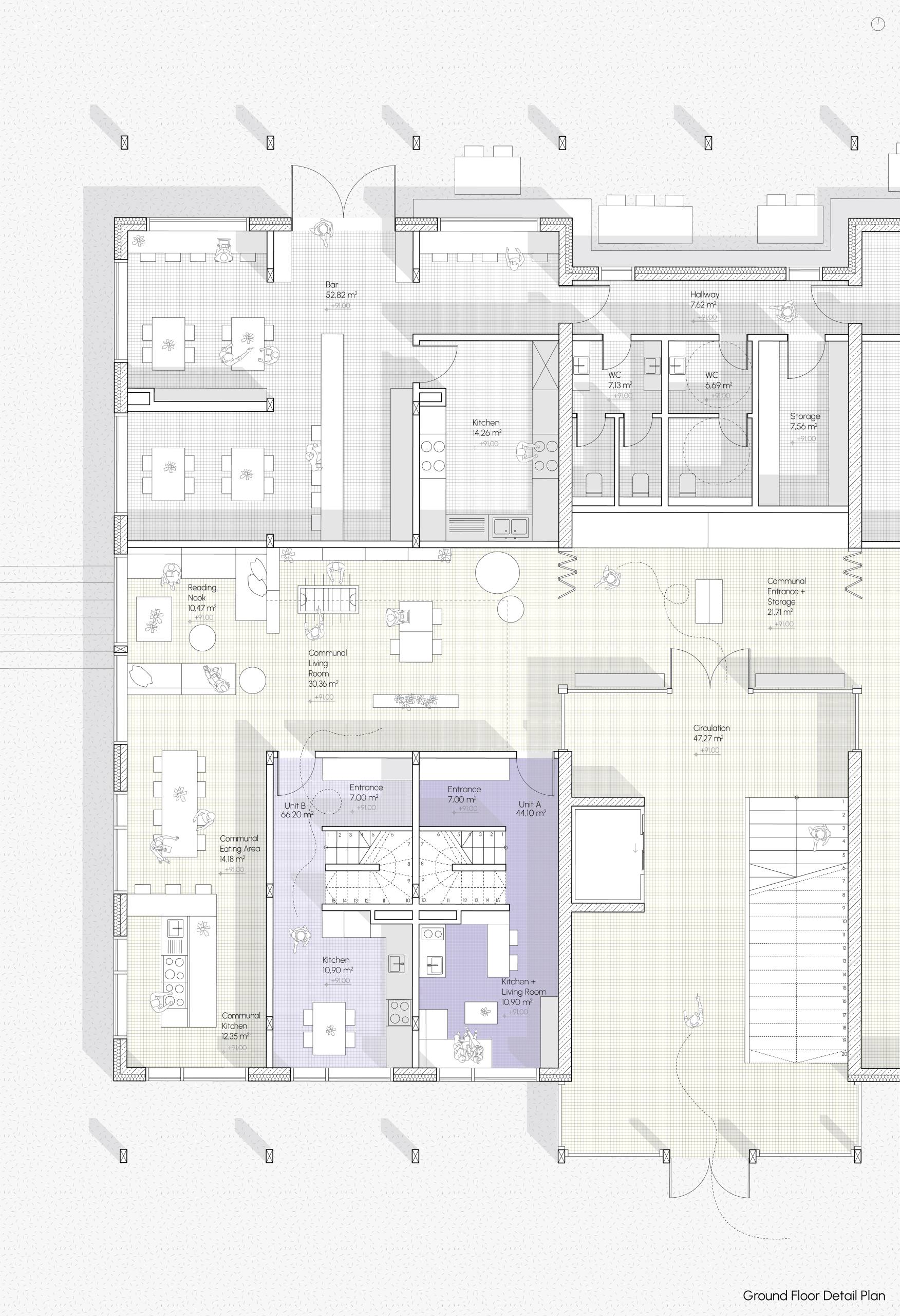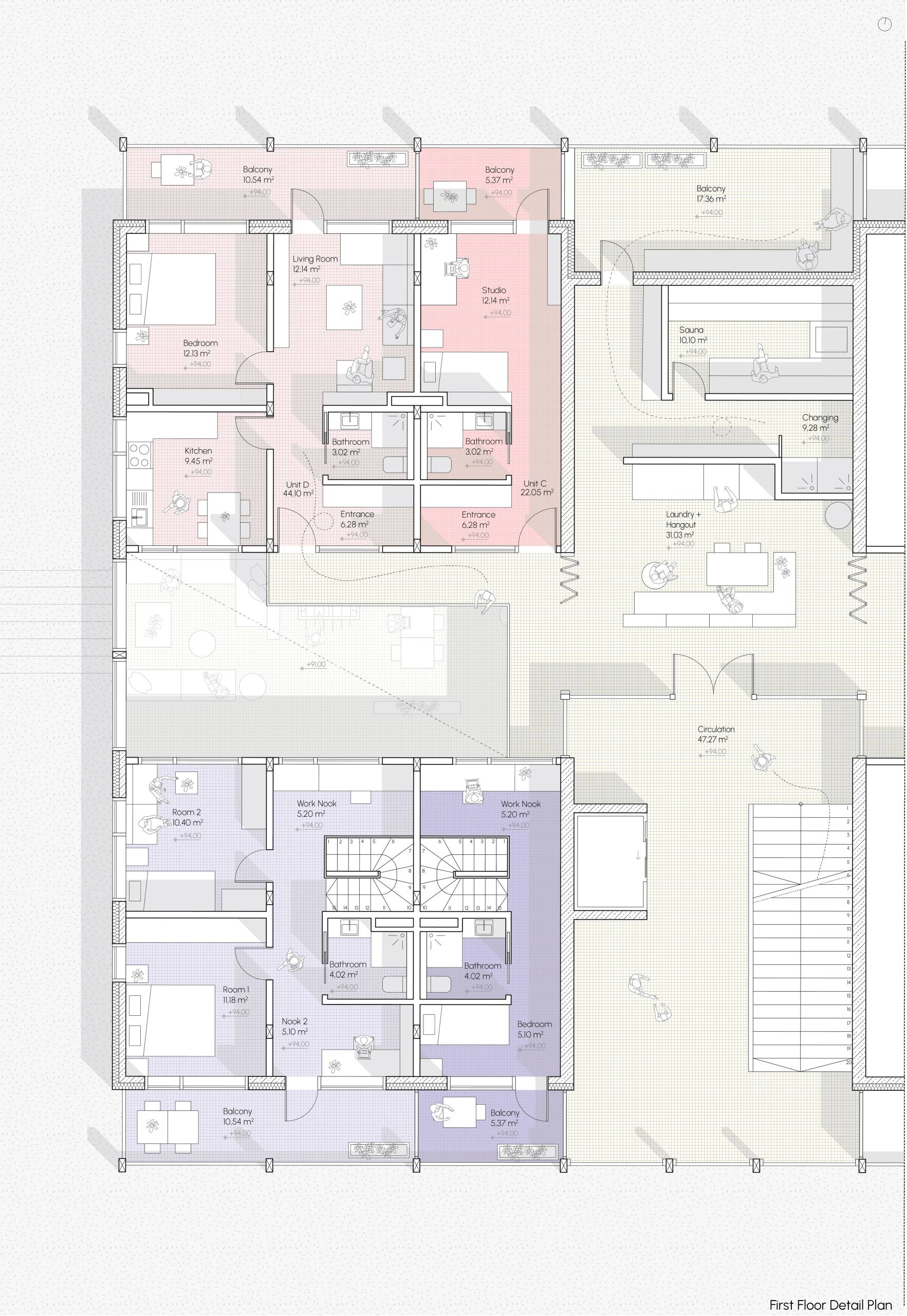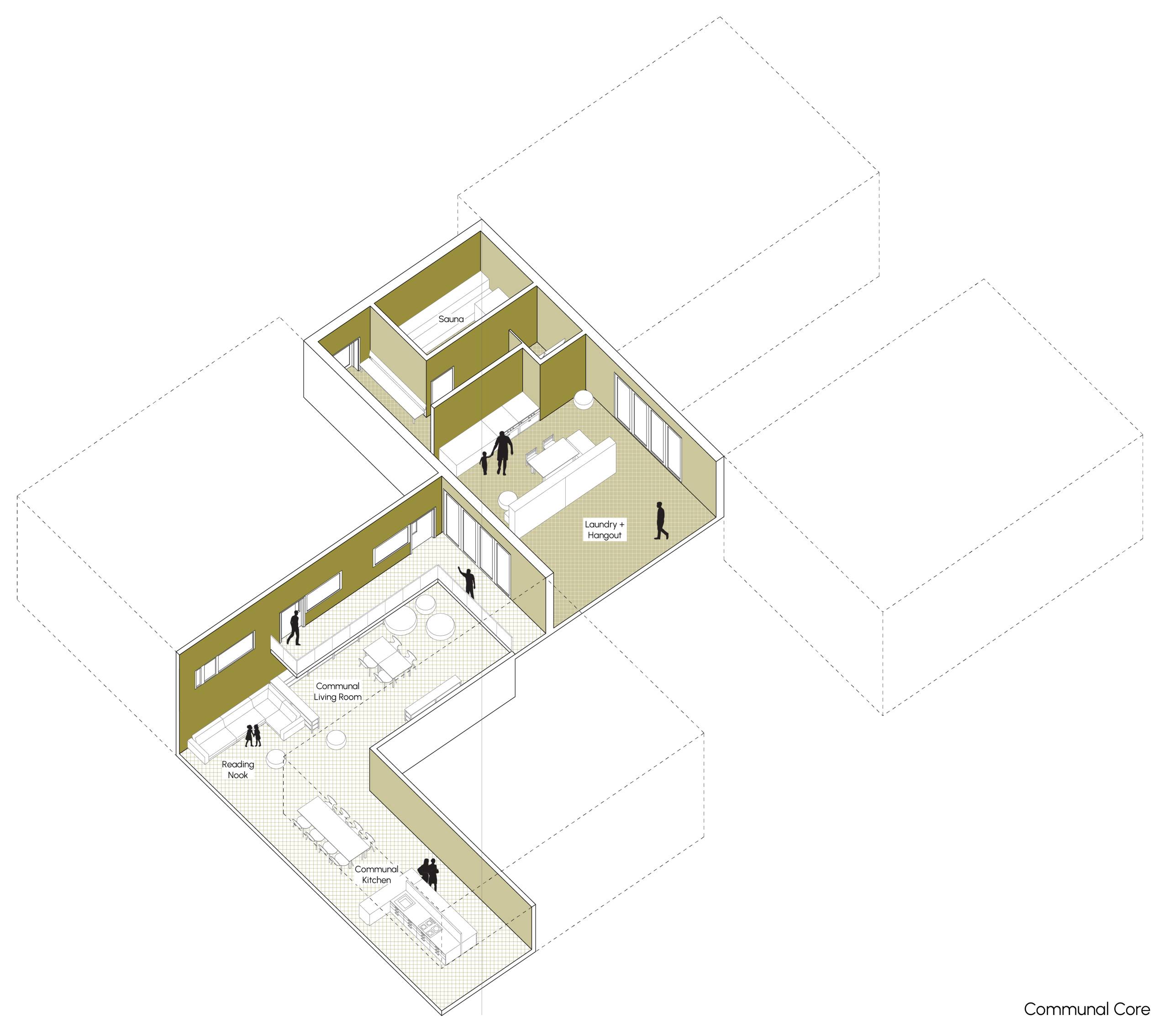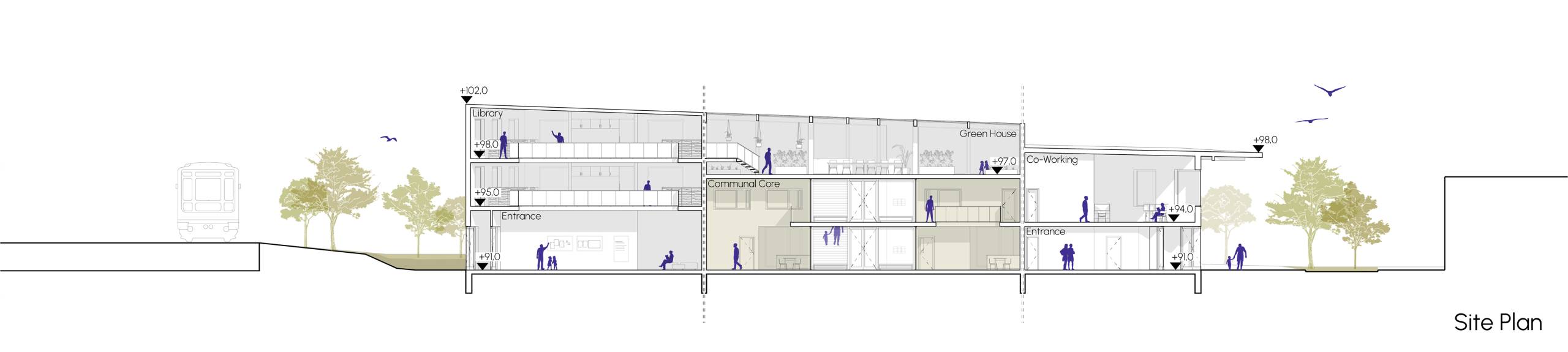 This project aims to transform an isolated site near the Nokia Arena into a vibrant, student-focused hub that reinforces Tampere’s identity as Finland’s second-largest university city. The area, bordered by major roads, presents a unique opportunity to create a “Student Island” that strengthens the connection between academic life and community. Our intention is to enhance the university’s character by fostering a international student community where Finnish and international students can live, learn, and collaborate. The design prioritizes a mix of student housing options, ranging from single units to shared apartments. With a focus on flexibility, the space will accommodate both short-term academic stays and long-term student life, ensuring adaptability to evolving needs. In addition to residential spaces, the site will feature communal areas, sports facilities, co-working spaces, and offices to promote interaction and innovation. Furthermore, the student island will support students’ daily needs with shops and leisure spaces. The project also seeks to integrate the site with its surroundings by connecting it to the Nokia Arena, the City Campus of Tampere University, and the broader Tampere city center, fostering a sense of openness and accessibility to create a sustainable, vibrant student community that enriches both the academic and social fabric of Tampere.