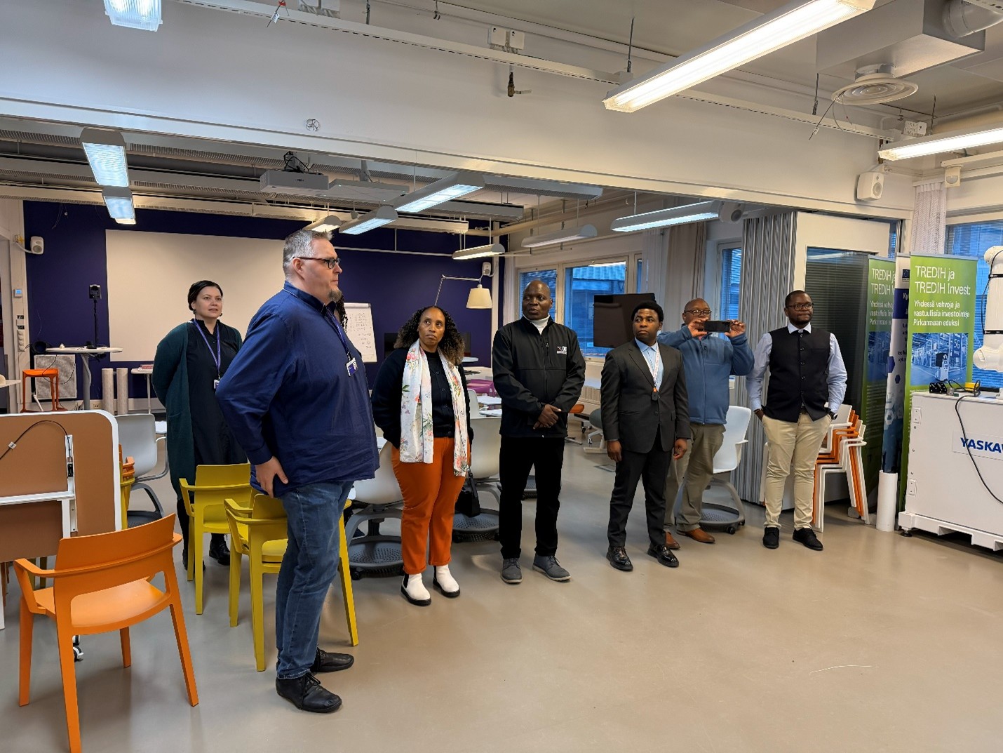 A six-member delegation from DUT visited TAMK in 2025 on 9 December and spent the full day discussing and exploring opportunities for collaboration across strategic RDI themes. The visit included presentations from TAMK leadership and experts, including Ari Sivula, Vice President; Syed Mubaraz, Head of International Business; and Niina Jallinoja, Dean of Business and Media Programmes who introduced TAMK’s profile and ongoing RDI activities. Both institutions share a long-standing commitment to applied research, community engagement, and industry collaboration. The meeting highlighted overlapping strengths and identified thematic areas where coordinated efforts could deliver tangible impact. DUT’s strong orientation towards innovation and community-focused initiatives aligns well with TAMK’s multidisciplinary expertise, solution-driven pedagogy, and extensive experience in applied sciences.